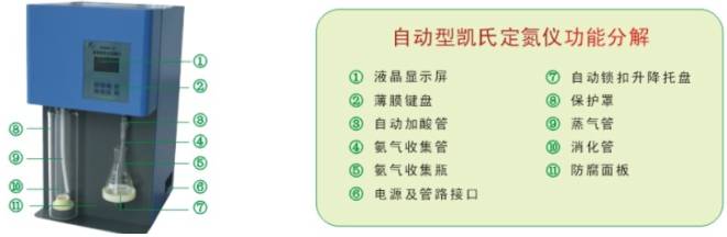 JZYG-ZDDN型全自動凱氏定氮儀(也稱為蛋白質測定儀)是本公司按凱氏定氮法為原理設計出來的一款產品,主要用來檢測糧食、食品、乳制品、飲料、飼料、土壤、水、藥物、沉淀物和化學品等中的氨氮、蛋白質氮等含量,檢測方法符合國標、AOAC、ISO等。