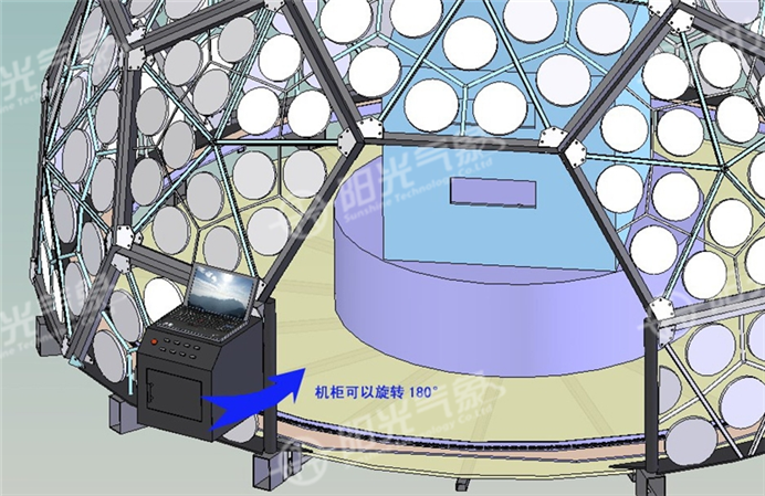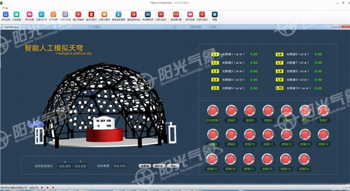 2、模擬太陽實時軌跡,通過計算機軟件控制,實現太陽高度角及方位角的自動定位,從而實現了太陽實時模擬。