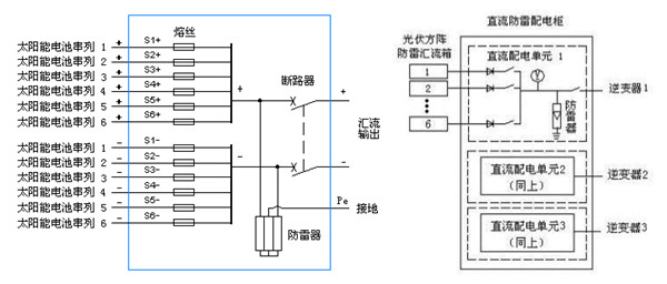 為了將光伏陣列防雷匯流箱的直流輸出匯流后再接入逆變器,系統需要配置1個直流防雷配電柜