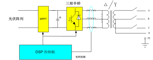 3)50Hz工頻隔離變壓器,實現光伏陣列和電網之間的相互隔離;