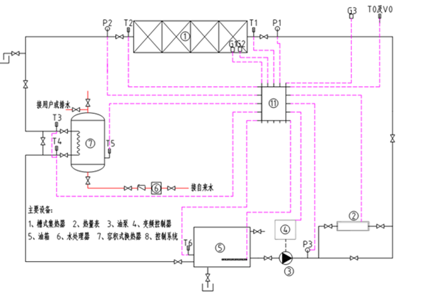 利用恒壓水箱、泵和流量控制閥,精密流量傳感器等調(diào)節(jié)控制工質(zhì)流量,并保證流量穩(wěn)定性在±1%以內(nèi)。系統(tǒng)采用變頻調(diào)速技術(shù)對油泵的流量進行任意調(diào)節(jié),變頻器為進口產(chǎn)品,可以實現(xiàn)網(wǎng)絡化控制,精度較高.在真空管太陽集熱器出口處和其它可能積聚空氣的地方安裝了放氣閥,管路設有穩(wěn)流裝置,時刻保證試驗其間的穩(wěn)流要求。