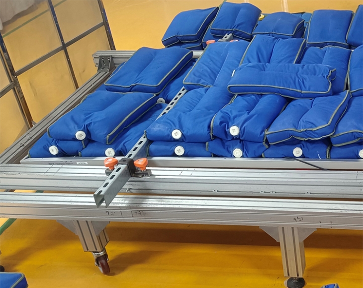 機械載荷設備支架采用鋼結構設計施加壓力,IEC61215的現行標準中包含的載荷測試,通過對被測設備表面施加壓力,觀察其變化,操作方便快捷,壓力均勻,安裝方便。是最經濟實用的靜態載荷試驗設備。同時,我們的設備均采用無塵沙袋,解決了光伏行業98%的載荷實驗煩惱,可徹底解決遺留灰塵在組件的問題。
