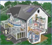 太陽房"一詞起源于美國。人們看到用玻璃建造的房子內(nèi)陽光充足,溫暖如春,便形象地稱為太陽房。太陽房是直接利用太陽輻射能的重要方面,把房屋看作一個(gè)集熱器,通過建筑設(shè)計(jì)把高效隔熱材料、透光材料、儲(chǔ)能材料等有機(jī)地集成在一起,使房屋盡可能多地吸收并保存太陽能,達(dá)到房屋采暖目的。太陽房概念與建筑結(jié)合形成了"太陽能建筑"技術(shù)領(lǐng)域,成為太陽能界和建筑界共同關(guān)心的熱點(diǎn)。