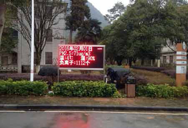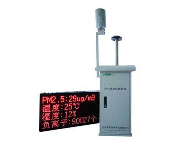 功能特點:新型空氣質量在線監測系統,主要監測粉塵、溫濕度、負氧離子等參數,可將數據直接顯示在LED屏上