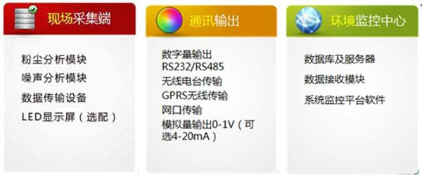 功能特點:對環境空氣中的懸浮顆粒物、噪聲進行實時監測