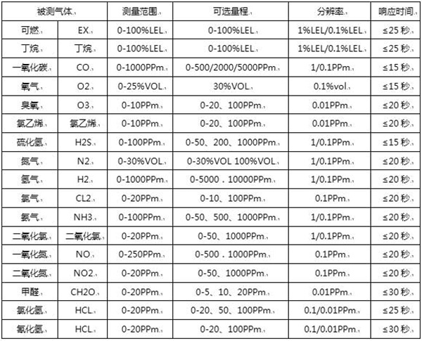 應用領域:多種需要檢測有毒有害氣體濃度的場所