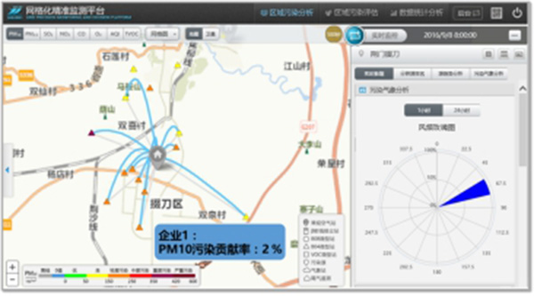 在掌握各類污染源排放狀況的基礎上,利用空氣污染數值預報模式模擬污染物質量濃度的分布特征, 研究區域空氣污染物輸送擴散的規律,監控污染源對主城區大氣環境質量的影響,有效控制重點工業污染,改善城市大氣環境質量。