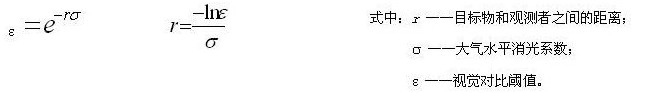 能見度是與人的視覺因素緊密結合在一起的一種復雜的心理-物理現象,表示的是可視距離。根據柯西密德(Koschmieder)定律,對以水平天空為背景的黑體目標物,目標物和背景視亮度對比可以表示為: