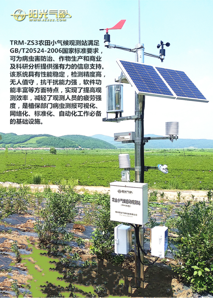 TRM-ZS3農田小氣候觀測站滿足GB/T 20524-2006國家標準要求,可為病蟲害防治、作物生產和商業及科研分析提供強有力的信息支持。該系統具有性能穩定,檢測精度高,無人職守,抗干擾能力強,軟件功能豐富等方面特點。