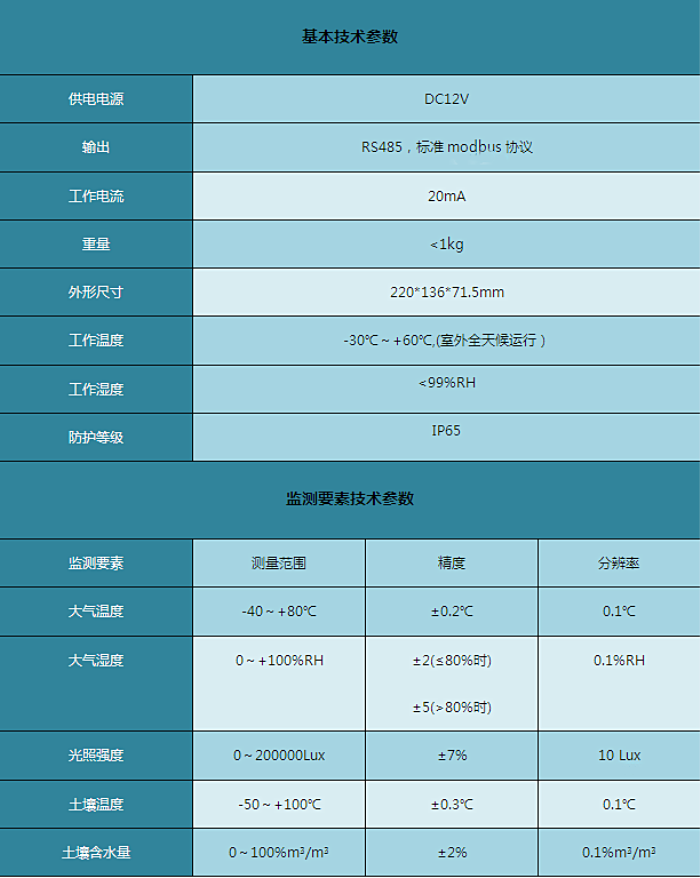 5、可監測環境溫濕度、土壤溫濕度、光照度五個生態環境參數,也可根據用戶需求定制;
