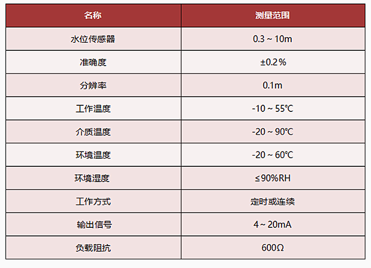 • 內置溫度傳感器,對超聲波速度進行修正。非接觸測量,適合10米內水位的測量。