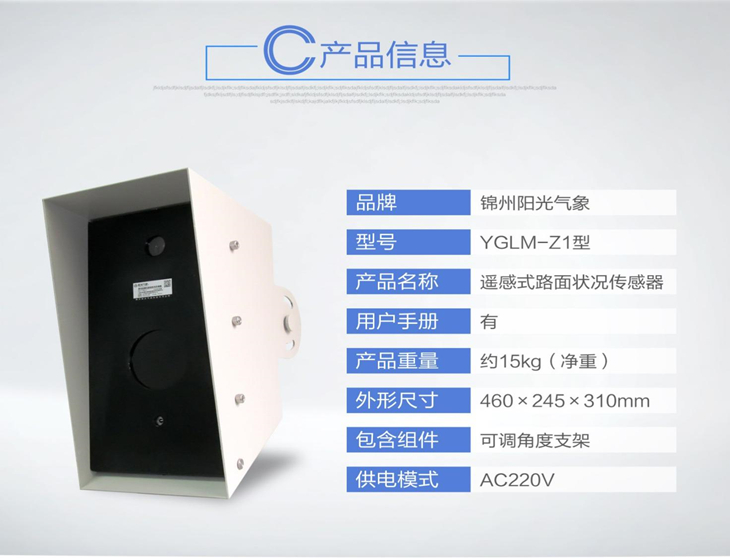 YGLM-Z1型遙感式路面狀況傳感器被安裝在一個全天候、耐久的外殼中,以保證承受惡劣天氣,這使得它在任何天氣條件下能提供精準數(shù)據(jù)。通過提供路面條件信息,YGLM-Z1型遙感式路面狀況傳感器為道路管理部門提供準確的監(jiān)測數(shù)據(jù),在道路安全出現(xiàn)險情之前,采取相應措施。