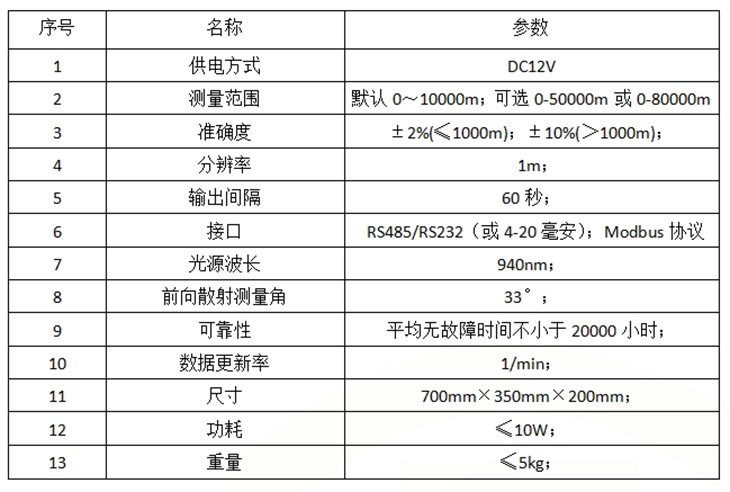 1、能見度檢測儀采用一體化結構設計,緊湊小巧,體積小、重量輕,安裝方便;