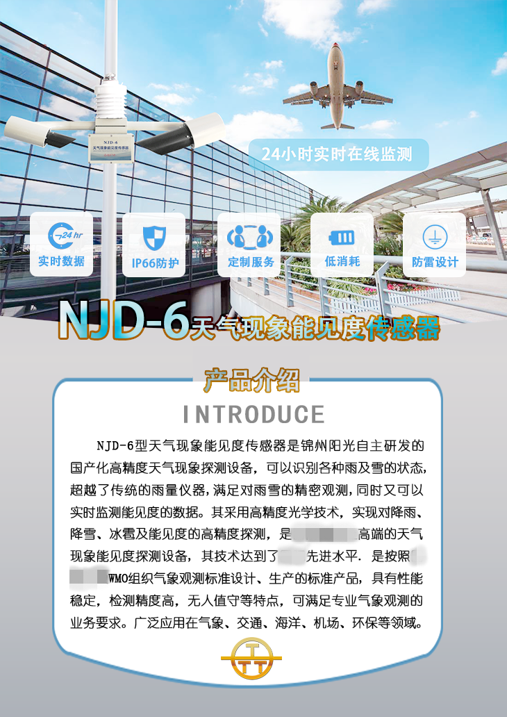 NJD-6型天氣現象能見度傳感器是錦州陽光自主研發的國產化高精度天氣現象探測設備,可以識別各種雨及雪的狀態,超越了傳統的雨量儀器,滿足對雨雪的精密觀測,同時又可以實時監測能見度的數據