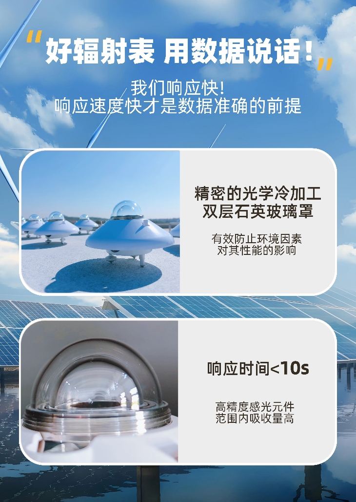 2、響應快:響應時間≤10S,對太陽輻射的微小變化都能迅速響應,確保數(shù)據的實時性和準確性。