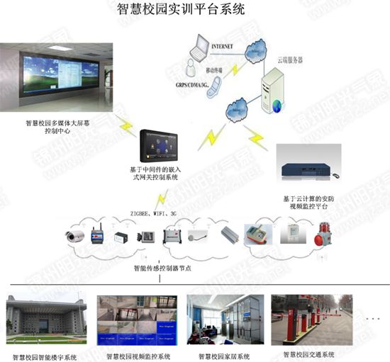 YG-SCP-SYS-01型智慧校園實訓系統的目標是建設一個功能完善、管理規范的智慧校園整體平臺。集校園的整體信息管理、能源管理、智能監控、智能車輛管理和校園安防等于一身,實現對各個子系統的集成與管理。物聯感知系統是整個智慧校園中最可見的一部分,我們將利用傳感器、采集器、RFID、視頻監控等感知技術和設備,實現校園環境管理的數字化。建設內容包括部署傳感器等數據采集設備并聯網;利用RFID等技術標識校園環境;構建校園環境信息數據庫和應用平臺等。