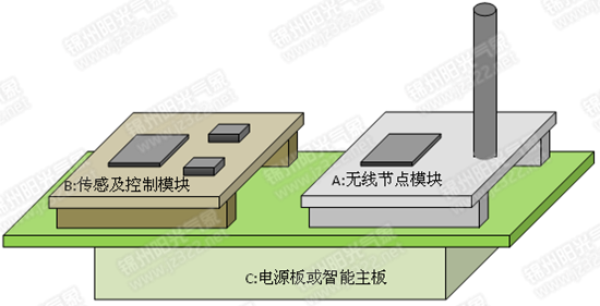 無線傳感網節點模塊采用模塊化設計,各個模塊可自由組合形成針對不同應用的無線節點。系統包含多個無線傳感網節點模塊及一個無線網絡協調器模塊。